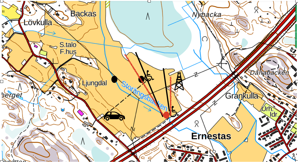 Ajoneuvo ja liikuntarajoitteisille pääsylliset paikat.